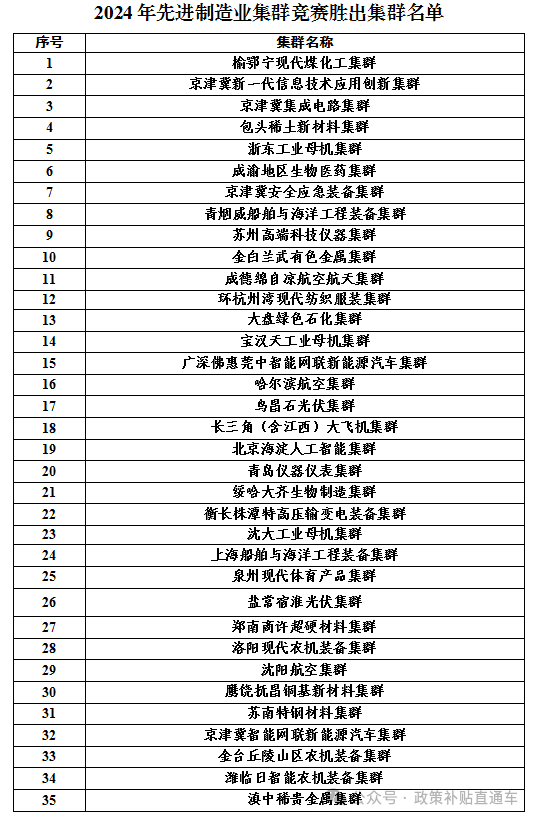 2024年先進(jìn)制造業(yè)集群競(jìng)賽勝出集群名單公示