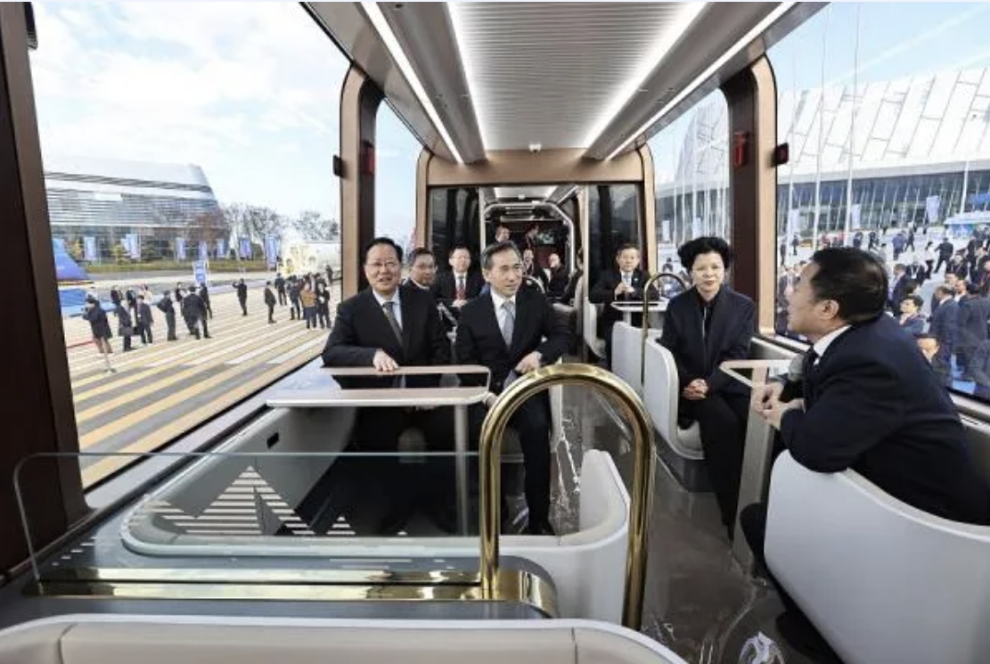 軌道交通博覽會期間,省長毛偉明,中國國際貿(mào)易促進會會長、黨組書記任鴻斌一行試乘中車新研發(fā)的雪山旅列。