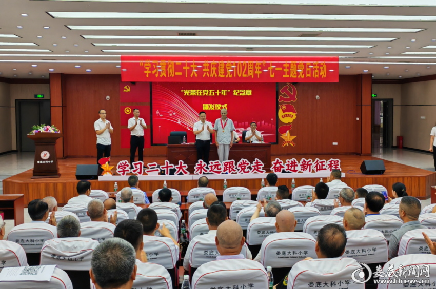 (為社區(qū)老黨員頒發(fā)“光榮在黨五十年”紀(jì)念章)